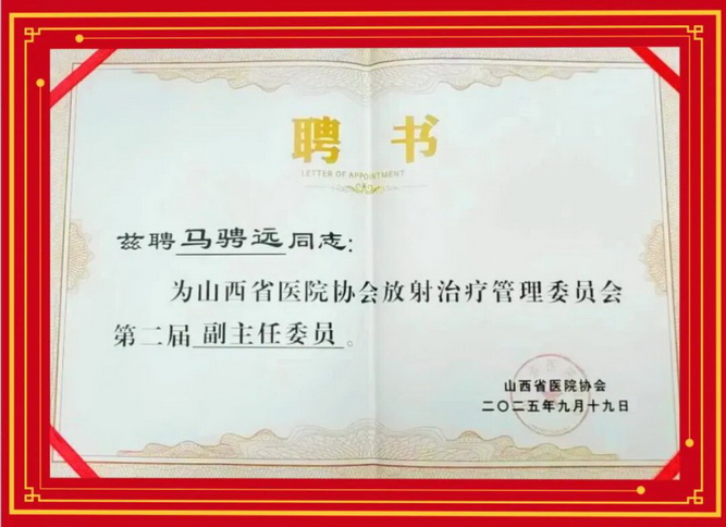 晉城大醫(yī)院馬騁遠(yuǎn)主任當(dāng)選山西省醫(yī)院協(xié)會(huì)放射治療管理委員會(huì)副主任委員