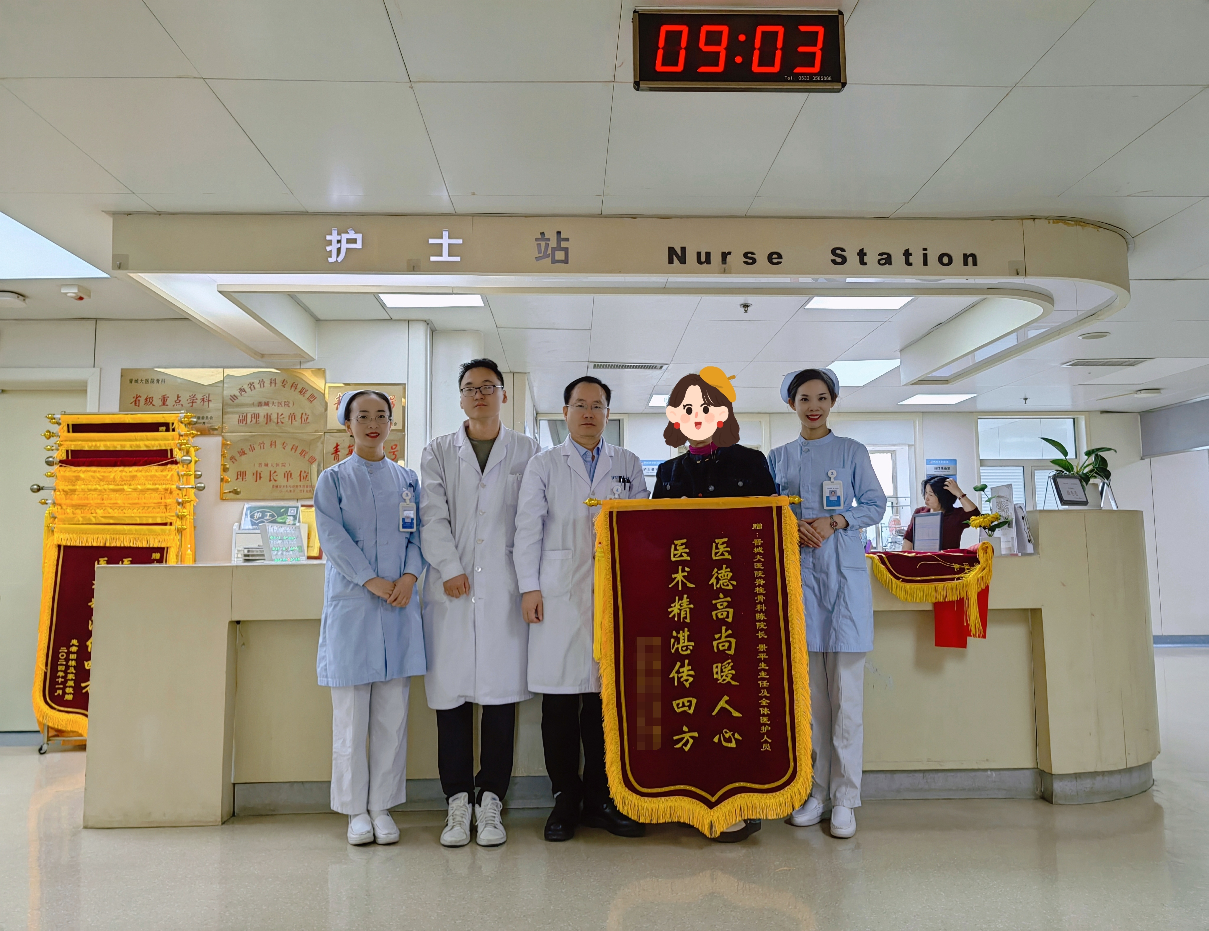 “多虧了您及時的診斷和治療,感謝住院期間醫(yī)護人員對我的照顧和關懷”!——趙先生為醫(yī)護人員豎起大拇指,并送來錦...