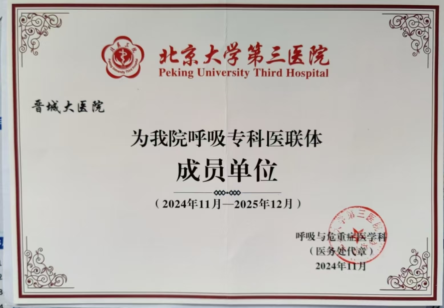 晉城大醫(yī)院呼吸與危重癥醫(yī)學(xué)科成為北京大學(xué)第三醫(yī)院呼吸專科醫(yī)聯(lián)體成員單位!