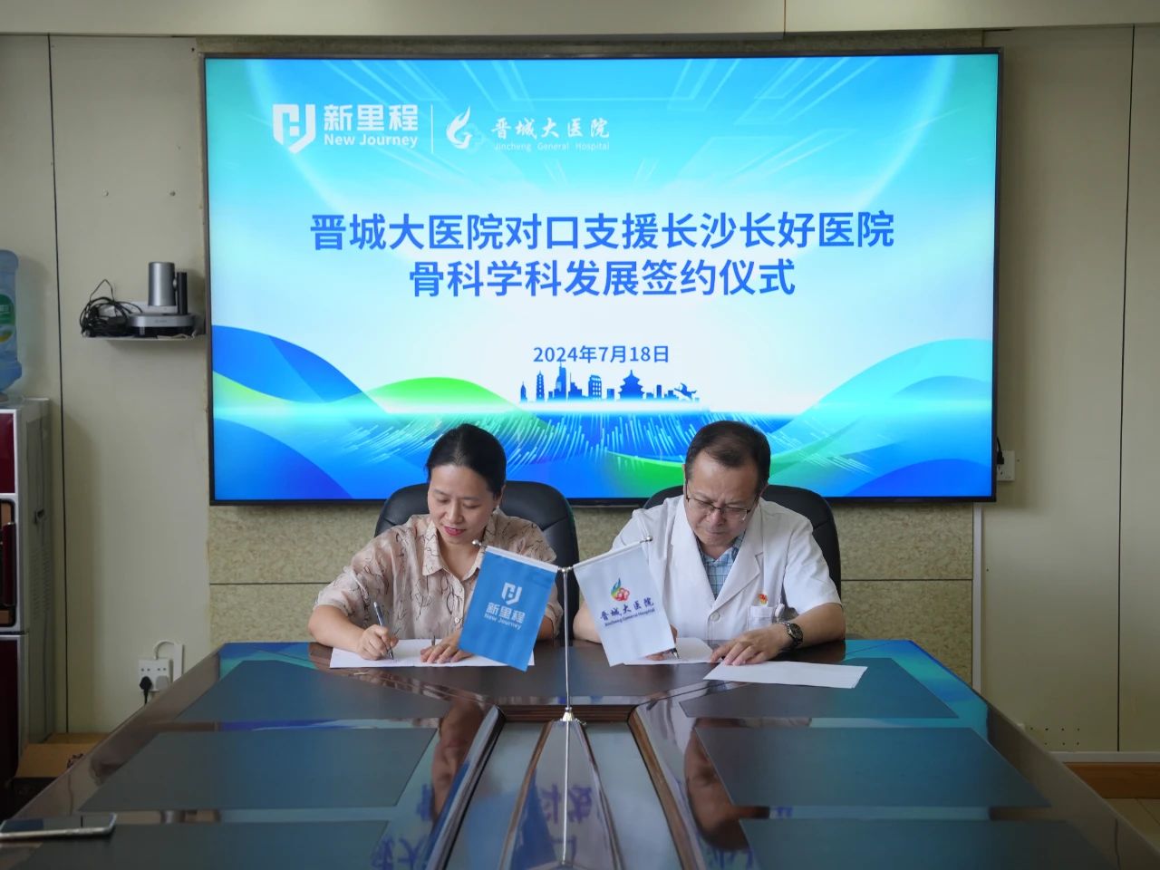 7月18日,晉城大醫(yī)院對口支援長沙長好醫(yī)院骨科學(xué)科發(fā)展簽約儀式圓滿舉行。新里程健康集團高級副總裁李蜀光,長...