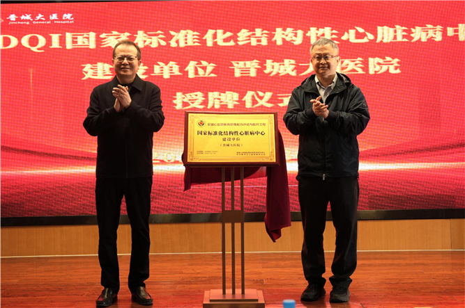 陰赪茜教授與晉城大醫(yī)院黨委書(shū)記、院長(zhǎng)薛偉民共同為晉城大醫(yī)院授牌“國(guó)家標(biāo)準(zhǔn)化結(jié)構(gòu)性心臟病中心建設(shè)單位”3月...